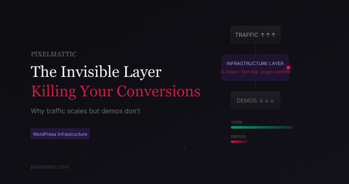Between your paid click and your demo form submission sits a chain of WordPress plugins, third-party JS embeds, server response delays, and form libraries — none of which were designed to work together under load. They accumulate over time: a chat widget here, a heatmap script there, a cookie consent tool that blocks rendering. Individually, each seems harmless. Together, they create a decision window — the 2–4 seconds where a qualified buyer is either building confidence or quietly closing the tab.