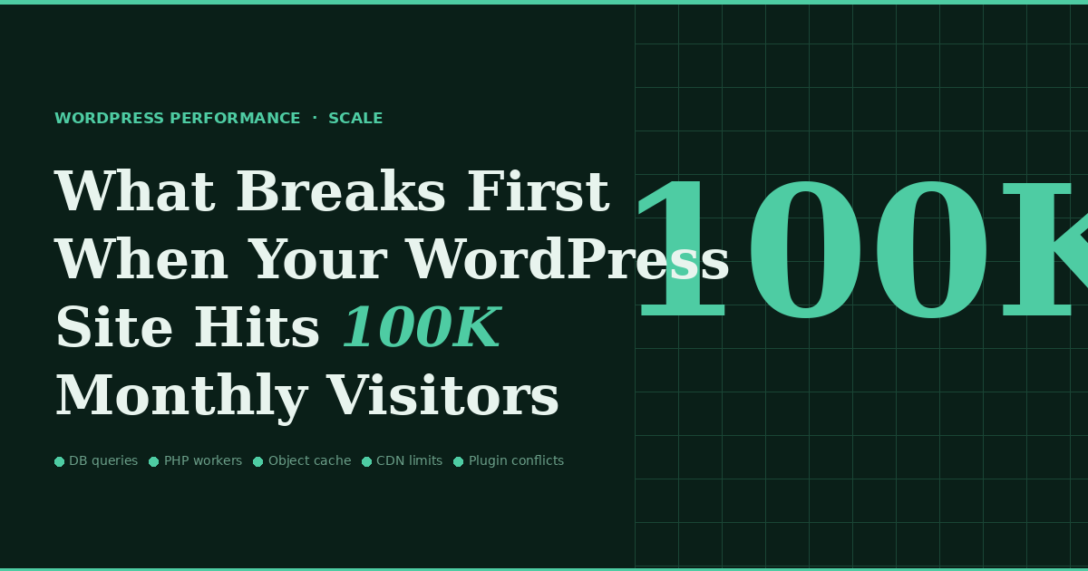 A hundred thousand monthly visitors sounds like a milestone worth celebrating. And it is — until you realize that WordPress, in its default configuration, was never designed to handle it gracefully. The transition from a site that performs well at 20,000 or 30,000 monthly visitors to one that holds up at 100,000 is not just a matter of more traffic. It’s a qualitative shift in the demands placed on every layer of your infrastructure. Here’s what gives way first, and roughly in what order.
