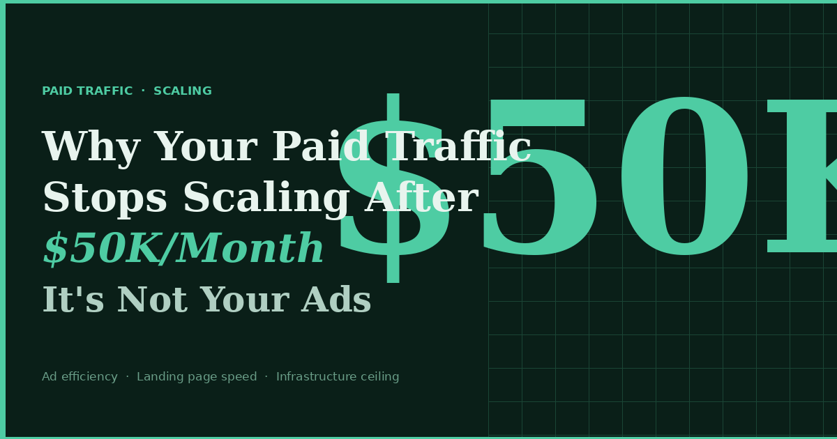 Paid traffic scales when infrastructure scales with it. The businesses that break the $50K ceiling without breaking their metrics aren’t running better ads than you. They’ve built a foundation that doesn’t collapse under pressure.
